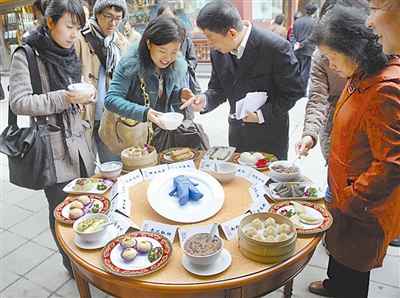 11月29日,“老廟微型點心宴”亮相上海豫園新開張的“亞洲美食匯”。各餐飲店的門前都設立了“點評箱”,請市民現場評選“我最喜愛的十大小吃”,評選出的小吃有望在明年進入世博園區的“世界美食一條街”。(楊毅 攝)