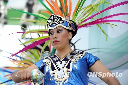 5月1日,上海世博會開園第一天,游客在美洲廣場欣賞濃郁的墨西哥風情舞蹈