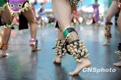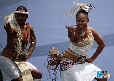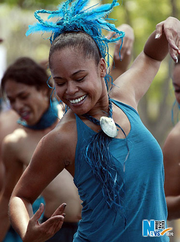 5月1日,演員在世博園大洋洲廣場表演太平洋現代舞。太平洋現代舞熱情洋溢,吸引不少觀眾駐足。當日,上海世博園正式開園