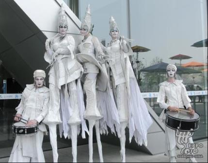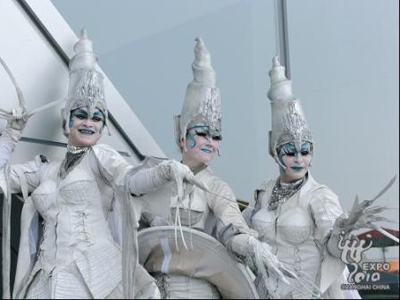5月1日是上海世博會正式開園的第一天。一早,位于浦東世博園區的主題館門口人頭攢動,為排解眾多參觀者因長時間排隊等候而可能產生的無趣乏味感,主題館方面特別邀請了來自荷蘭的“近距離劇團”,為排隊參觀者帶來富有濃郁北歐風情的精彩演出