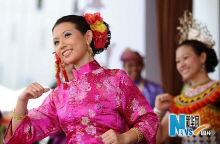 5月1日,演員在馬來西亞館開館儀式上表演舞蹈