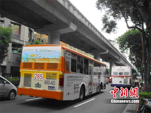 中新網7月19日電 上海世博會現正如火如荼進行,為弘揚中國金幣文化,臺灣大洋金幣有限公司近期在臺北、臺中、高雄的部分公交車上刊登2010年上海世界博覽會金銀紀念幣廣告。希望藉由公交車廣告讓世博盛會氣氛能更深入臺灣城市人心。圖為臺北(上)、臺中(下)刊登相關廣告的公交車圖片。