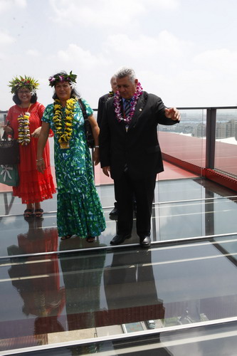 嘉賓們赴太平洋聯合館參觀庫克群島等國展區 攝影:卞啟武
