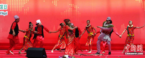 9月3日,上海世博園迎來尼泊爾聯邦民主共和國國家館日。當日在世博中心舉行的官方儀式上,身著尼泊爾特色服飾的藝術家表演當地著名的山地舞蹈。中新社記者 郭虹 攝