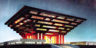 被很多網(wǎng)友形容成中國寶鼎的中國館,外形更像一枚紅彤彤的篆字中國印。一共分三個展區(qū),力求凝聚中國元素,突出中國特色,顯示中國氣派.在第一個展區(qū),觀眾可以乘電梯直達(dá)49米處,首先看到的是以《清明上河圖》為代表的“東方足跡”核心展區(qū),來向世界展示中國當(dāng)代城市化的進(jìn)程。第二個展區(qū)位于41米層,叫“尋覓之旅體驗(yàn)區(qū)”,欣賞“石橋”“斗拱”“園林”等中國建筑特有的展項(xiàng),了解我國幾千年城市興建的軌跡。第三個展區(qū)是位于33米層的“低碳行動”功能展區(qū),反映中國用“取之有度、用之有節(jié)”的東方智慧,來破解現(xiàn)代城市節(jié)能減排的難題。中國館為人們提供了四大交流平臺,南側(cè)的“城市廣場”、9米高的國家館架空平臺、13米高地區(qū)館的屋頂平臺“城市花園”和63米高的國家館觀景平臺。