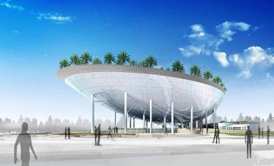 主體建筑更像一艘高懸于空中的大船,底部和甲板種滿了沙特標(biāo)志性植物:棗椰樹。在地面和屋頂栽種外觀類似椰子樹的棗椰樹,形成一個樹影婆娑、沙漠風(fēng)情濃郁的空中花園,沙特館的另一個亮點(diǎn)是充滿創(chuàng)意世界上最大的IMAX3D三維影院,影院屏幕1600平米-,等于兩個足球場,以全新體驗(yàn)方式讓觀眾感受沙特古老的手工藝等。展館的 墻上 和 地上 以 水幕形式 展示 中沙兩國的文字書法。