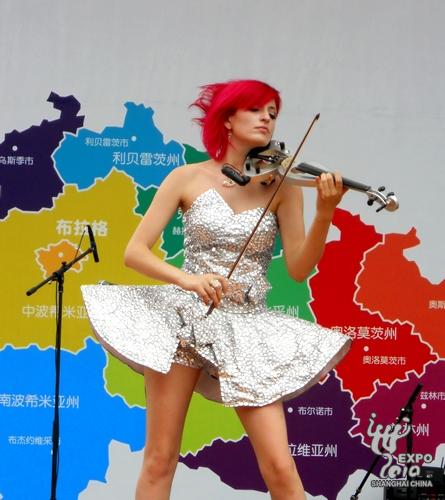 捷克藝術(shù)家為現(xiàn)場(chǎng)觀眾呈現(xiàn)精彩演出 17日是捷克館14州特別展覽的重點(diǎn)呈現(xiàn)日,來自捷克的民間文藝表演在歐洲廣場(chǎng)上演。