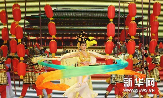 9月6日,來自陜西的演員在上海世博園寶鋼大舞臺表演舞蹈。新華社記者 藺以光 攝