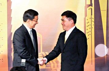 韓正與臺北市市長郝龍斌握手
