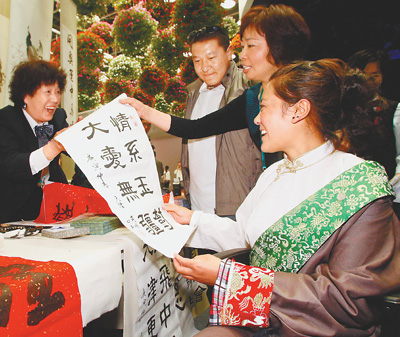 獲贈殘疾人書法家作品。