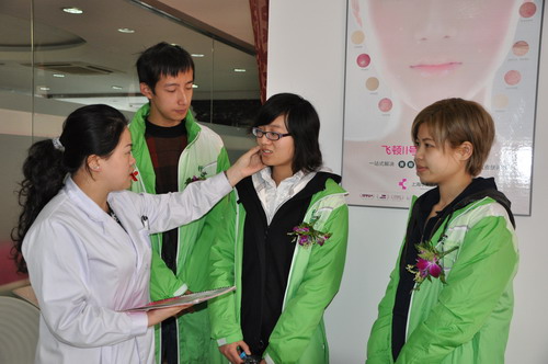 在“給奉獻者送去關愛,讓小白菜變得更美”的公益活動現場,這家醫院的皮膚科醫生對前來醫院的30多位優秀“小白菜”進行了特別的服務。醫院使用復合彩光嫩膚技術,為他們逐個作免費的光子護膚嫩膚美容。醫生介紹,一個姑娘進去,30分鐘出來,臉上的黝黑色不見了,面龐變得嫩白,皮膚變得細膩,有光澤,面容明顯地變得年輕起來,姑娘和小伙都喜不自勝。“小白菜”除做彩光嫩膚美容外,上海華美醫療美容醫院還給他(她)們贈送了紀念品。
