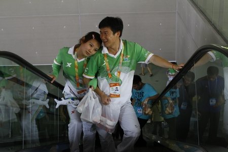 1984年出生的謝國祥由于出生時藥物使用過量,眼部患有白內障,視力只有0.1,而1985年出生的謝丹玲卻是先天性青光眼,查不出視力,只有微弱的光感。2001年,兩人在上海盲童學校上學時相識,在上海殘疾人運動隊參加冬訓時,朱國祥是謝丹玲的引導員。不知道為什么朱國祥開始對謝丹玲產(chǎn)生好感。“記得與謝丹玲相識時,大家都說她是一個漂亮的女孩,自己心里美滋滋的。”
