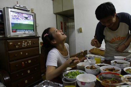 在朱國祥家中吃飯時,兩人開心的話題不斷。