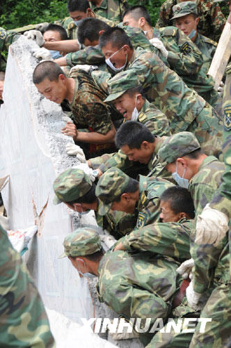 在那些瓦礫間,還有我們的兄弟姐妹在呼吸;在那些廢墟下,還有我們同胞的靈魂沒有安眠;在那些城市和山野,還有許多親人朋友在互相尋找、守望! 震區和從國內外各地迅速趕來的救援隊伍,在受傷的城市和鄉村穿行、挖掘、搬運;那些綠色、藍色、橙色、迷彩的身影,在沒有炮火的戰場上流汗、流血、流著淚水……