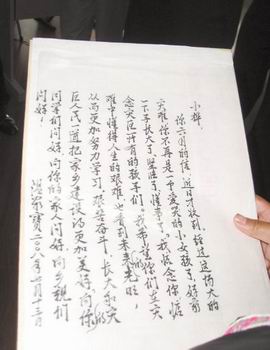 24日上午,四川省委辦公廳派專人趕赴綿陽市,把中共中央政治局常委、國(guó)務(wù)院總理溫家寶的親筆回信轉(zhuǎn)交給劉小樺。