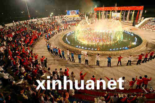 8月4日,在俄羅斯“海洋”全俄兒童中心,來自中國四川地震災(zāi)區(qū)的孩子們和俄羅斯輔導(dǎo)員共同參加告別晚會。新華社記者鄭悅攝