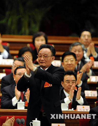再次當選國家主席、中央軍委主席的胡錦濤,起身向代表們鞠躬致意。全場再次響起長時間的熱烈掌聲。