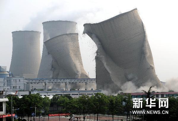 9月16日,浙江電廠爆破90米巨型冷卻塔。華能長興電廠在8月份關(guān)停了兩臺(tái)125兆瓦級(jí)的發(fā)電機(jī)組,這兩臺(tái)發(fā)電機(jī)組已經(jīng)工作18年。舊機(jī)組關(guān)停后,每年可節(jié)約標(biāo)準(zhǔn)煤50多萬噸,減少二氧化硫排放1000多噸,減少粉塵排放300噸左右。 新華社記者徐昱攝