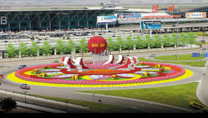 機場景點為“如意”。擺放在在機場候機樓前,花壇以大紅色彩、黃色為主主色調烘托喜慶,整個模紋花壇直徑9米的圓型彩球高高挺立,下面為四組玉如意和多色帶烘托,寓意喜慶、吉祥、圓滿之意。