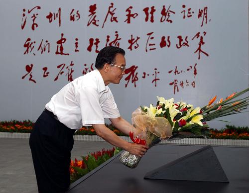 8月21日,溫家寶專(zhuān)程來(lái)到深圳博物館參觀《改革開(kāi)放總設(shè)計(jì)師鄧小平》大型展覽。這是溫家寶參觀展覽前向鄧小平同志塑像獻(xiàn)花。