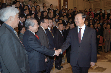 圖1:全國政協副主席、中央統戰部部長杜青林接見了全體與會代表并發表重要講話。