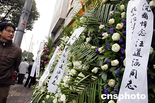 海峽兩岸關(guān)系協(xié)會(huì)會(huì)長(zhǎng)汪道涵的遺體告別儀式今天上午在上海舉行,無(wú)數(shù)上海市民都來(lái)和這位令人尊敬的長(zhǎng)者、上海市的老市長(zhǎng)見上最后一面。