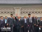 吳伯雄在中山陵前揮手向現(xiàn)場的歡迎的民眾致意]]>