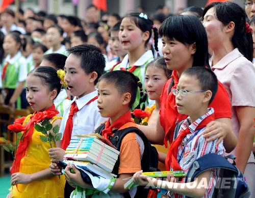 當日,廣西岑溪市第二小學開展“關愛災區兒童 同歡‘六一’佳節”活動。通過多彩的節目表演,讓最近轉學來校的兩名災區兒童感受濃濃的集體情誼,共同迎接“六一”兒童節到來。     新華社記者張愛林攝