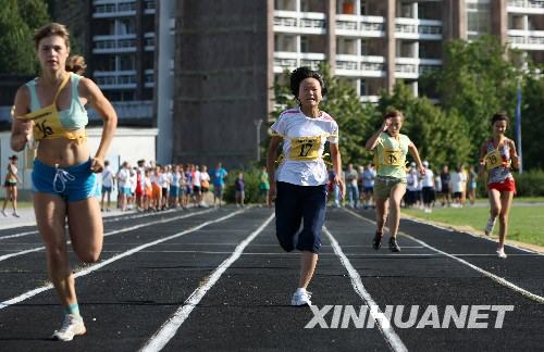 8月3日,在俄羅斯南部黑海之濱圖阿普謝的“小鷹”全俄兒童中心,正在這里療養的四川地震災區學生(左二)與俄羅斯學生一起參加百米跑比賽。當日,“小鷹”全俄兒童中心舉行運動會,中俄學生同場競技,一展風采。新華社記者沈伯韓攝