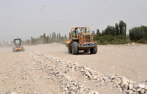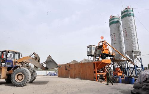 7月21日,在新疆和田火車站施工現(xiàn)場(chǎng),工人駕駛鏟車,將原料倒入混凝土攪拌機(jī)內(nèi)。在建設(shè)中的喀(什)和(田)鐵路正線全長487公里,項(xiàng)目投資估算總額46.4億元,預(yù)計(jì)于2010年建成通車。屆時(shí),“和諧號(hào)”動(dòng)車組將運(yùn)行于塔克拉瑪干沙漠南緣,加速南疆三地州(喀什地區(qū)、和田地區(qū)、克孜勒蘇柯爾克孜自治州)的經(jīng)濟(jì)社會(huì)發(fā)展。新華社記者 金良快 攝