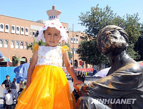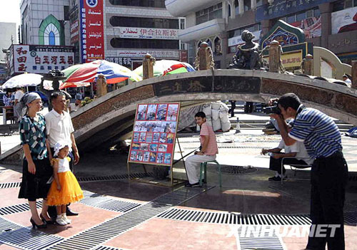 7月21日,父母帶著阿爾孜古麗在烏魯木齊二道橋附近留影。新華社記者章磊攝