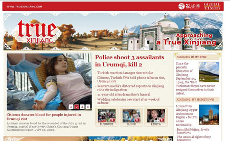 由英文環球網( www.globaltimes.cn)主辦的真實新疆網( www.truexinjiang.com)于2009年7月13日正式開通,這是目前中國國內首家全面介紹新疆的英文網站。