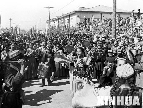 1955年10月1日,新疆各族人民歡慶自治區(qū)成立