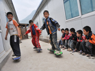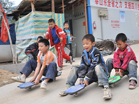 北川縣桂溪板房區(qū)一位孩子玩滑板]]>