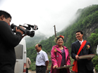 臺灣著名新聞主播李四端先生在北川地震遺址冒雨采訪]]>