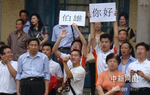 大學生在中山陵打出“伯雄你好”標語