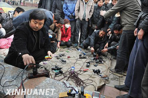 4月16日,唐全(前左一)在為手機充電。新華社記者 李紫恒攝 一場地震劫難,讓滋潤整個神州的“三江源”滿目瘡痍,遍地廢墟。 一場生死救援,讓災(zāi)區(qū)的人民感受到無比的溫暖,創(chuàng)造著一個又一個奇跡。 與時間競速,和生命賽跑。在黃金救援期的第三天,全體中國人用行動書寫著對生命的尊重,彰顯了真情的無價。 生命大搜救 國際救援經(jīng)驗表明,地震發(fā)生后的72小時是最關(guān)鍵的“黃金救援時間”。 4月16日,玉樹地震救援進入第三天,“黃金救援72小時”正一分一秒地?zé)o情流逝。在搜救現(xiàn)場,不少群眾翹首企盼新的生命奇跡出現(xiàn)。 沖刺,為了生命的奇跡。從黨中央、國務(wù)院到各地方各部門,從解放軍、武警部隊、消防官兵到公安民警,從專業(yè)救援隊到普通志愿者,從各級領(lǐng)導(dǎo)干部到廣大人民群眾……每一個人都在爭分奪秒,每一個人都在與死神賽跑。 4月15日下午,中共中央政治局常委、國務(wù)院總理溫家寶飛抵青海玉樹地震災(zāi)區(qū)。他指出,當(dāng)前,抗震救災(zāi)第一位的工作是救人。只要有一絲希望,就要盡百分努力,堅持下去,決不放棄。 快、快、快!多爭取一秒就可能多搶救一個生命。 “我們的官兵們有的是剛拔了吊瓶,有的是剛剛嘔吐完,就立即趕往搜救現(xiàn)場,由于在高海拔環(huán)境下晝夜奮戰(zhàn),很多人已經(jīng)接近體力的極限。”青海消防總隊蘭州支隊的一個戰(zhàn)士剛剛從一個救援地點撤下來,嘴唇?jīng)]有血色,眼中滿是血絲,來不及向記者多說一句話,就匆匆趕往下一個傳出有生命跡象的救援地點。 一根根木樁被撬起,一塊塊礫石被挖出,一個個身影在閃動。16日,來自全國各地的近百支搜救隊在廢墟里展開拉網(wǎng)式排查,克服高原高寒和連續(xù)作戰(zhàn)等重重困難,突破體力和意志極限與時間賽跑,以期尋找生命的奇跡。 快、快、快!多付出一份努力就多一份生的希望。