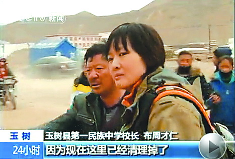 “14日我們接到總社通知,晚上12點半從西寧出發,到玉樹距離是800公里,經過13個小時到達災區。途中,在翻越一座海拔4000多米的大山的時候,由于車速較快,又是石板路,差一點翻車。在離災區5公里的時候,我們碰上了余震,山體滑坡,一個石頭從山上滾下來砸到汽車輪胎,幸虧沒發生大事。”經濟日報駐青海記者站站長馬玉宏在談到這段經歷時仍然心有余悸。
