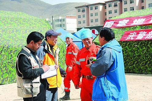 此刻,人民日報、新華社、光明日報、經濟日報、中央人民廣播電臺、中央電視臺、中國國際廣播電臺、中國日報等中央媒體的200多位記者正奮戰在玉樹抗震救災前線——