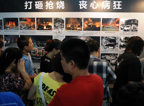 8月6日,觀眾在觀看平息“7·5”事件紀實圖片展。 新華社記者 沙達提 攝