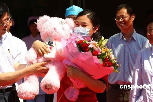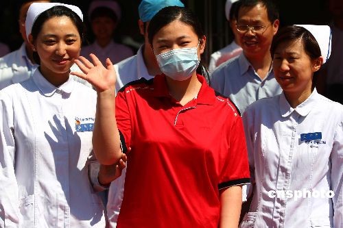 5月22日,北京市首位甲型H1N1流感患者小劉康復出院。小劉今年18歲,就讀于美國紐約州某大學,本月11日回京,兩天后感覺發熱,14日到北大醫院就診疑似流感,15日凌晨轉入北京地壇醫院,16日確診為甲型H1N1流感患者。中新社發 富田 攝