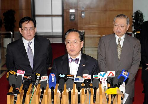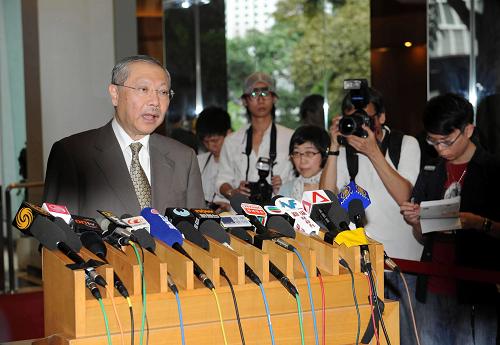 6月11日,香港特區(qū)行政長官曾蔭權宣布停課決定。當日,香港特區(qū)行政長官曾蔭權與香港特區(qū)政府大流感應變督導委員會舉行會議后表示,香港圣保祿學校有12名學生確診感染甲型H1N1流感,香港已出現集體感染個案,因此做出全港小學、幼兒園及特殊學校停課決定。新華社記者黃本強攝