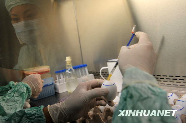 6月17日,研究人員對兩支甲型H1N1流感疫苗生產用毒株進行接種培養。