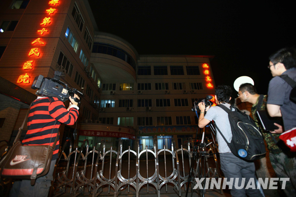 5月10日,媒體記者在成都市傳染病醫院外采訪。當日下午,衛生部接到四川省衛生廳報告,四川省人民醫院發現1例發熱病例,根據臨床表現和實驗室檢驗結果,初步診斷為甲型H1N1流感疑似病例。目前,患者已轉送成都市傳染病醫院隔離治療,其就診過程中的密切接觸者也已采取醫學觀察措施。新華社記者陳建力攝