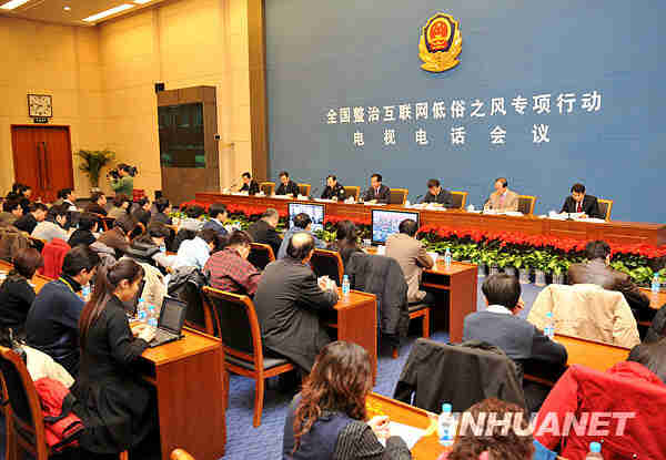 1月5日,國(guó)務(wù)院新聞辦等七部委召開(kāi)電視電話會(huì)議,部署在全國(guó)開(kāi)展整治互聯(lián)網(wǎng)低俗之風(fēng)專(zhuān)項(xiàng)行動(dòng)。新華社記者劉建生攝