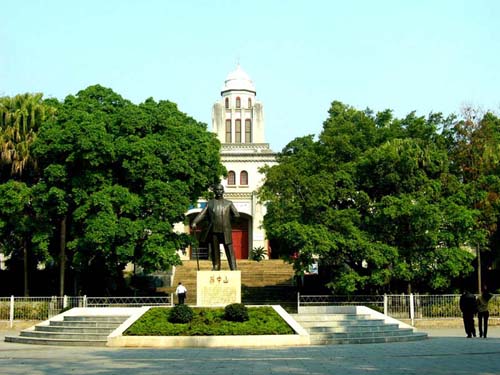 梧州中山紀念堂中國最早興建的孫中山紀念堂是梧州中山紀念堂。位于梧州城區東北的中山公園北山上。1921年~1922年(民國10年~11年)孫中山曾3次到梧州從事革命活動,1925年孫中山逝世,梧州人民舉行隆重的悼念儀式,李濟深倡議在孫中山巡視過的北山頂興建中山紀念堂。1926年奠基,1928年夏動工,1930年10月落成。主樓高約20米,建筑面積1630平方米。建筑平面呈“中”字形,分前、后座,采用中國古典宮殿式與羅馬圓頂式相結合的建筑設計。前座中部為4層塔式圓頂樓建筑,正門鑲嵌陳濟棠題寫的“中山紀念堂”匾。后座是會堂,會堂正面主席臺上方塑有古銅色孫中山像浮雕和孫中山遺囑全文,兩側有孫中山的“革命尚未成功,同志仍須努力”的遺訓;堂內陳列著孫中山生平事跡,尤其是民主革命時期孫中山3次蒞臨梧州的史跡。1981年列為自治區級文物保護單位,1995年列為廣西愛國主義教育基地。中山紀念堂前有草坪、荷池,周圍有晨鐘亭、北苑、動物園、西竺園等景點,綠樹成蔭,花團錦簇,環境優美,已成為旅游名勝。