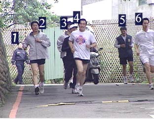 馬英九跑步鍛煉,現在維安層級提升,最少有六名隨護陪著跑。(圖:臺灣東森新聞)
