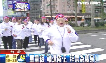 TVBS最后說,其實馬英九的“健康政策”和推動醫療保健比較有關系,跟減肥比較沒有關系,但無論如何,“健康”兩個字,已經吸引到這群“重量級”的支持者,助選兼減重,對馬陣營跟他們來說,都是兩全其美。(高大林) |