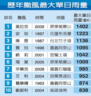 “莫拉克”臺風帶來破紀錄驚人雨量。圖片來源:臺灣《聯合報》