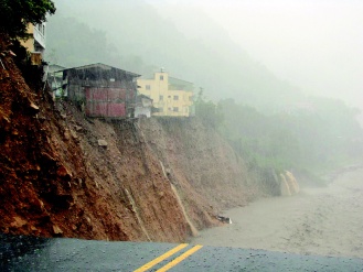 公路坍塌民房懸斷崖